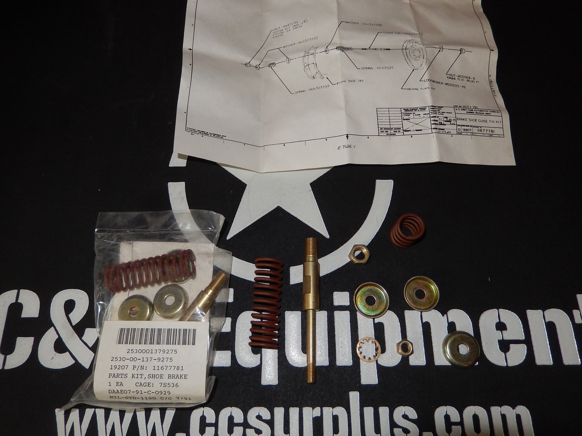 5 TON M800 M54 SERIES BRAKE SHOE PARTS KIT 2 kits enough for one complete drum brake if you need the whole axle order 2 1167781 NEW US ARMY P/N - 11677781 NSN 2530001379275. I have shoes in stock also If you have any more question feel free to call or emails us. Thanks 812-336-2894